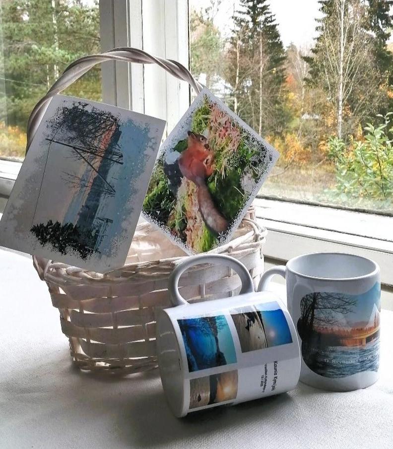 Kuvamukit, hinta 12,50 € / kpl aiheina mm. Kymijoki, Hirvikosken silta ja Hirvi